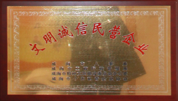 公司連續(xù)八年榮獲威海市“誠(chéng)信開(kāi)發(fā)企業(yè)”、“建筑施工誠(chéng)信企業(yè)”,連續(xù)九年被評(píng)為威海市級(jí)“守合同重信用企業(yè)”,多次被評(píng)為威海市“市級(jí)文明單位”、“質(zhì)量管理先進(jìn)企業(yè)”、 “安全管理先進(jìn)企業(yè)”,乳山市“優(yōu)秀企業(yè)”、“先進(jìn)民營(yíng)企業(yè)”、“納稅明星企業(yè)”,在社會(huì)上逐步樹(shù)立了誠(chéng)信、穩(wěn)健的企業(yè)形象。